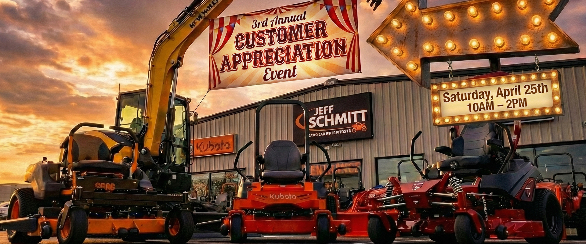 Get ready for an action-packed day at Jeff Schmitt Lawn & Motorsports! OurThird Annual Customer Appreciation Event is bigger and better than ever. Enjoy live equipment demos, incredible savings, free food trucks, exciting giveaways and raffles, and family-friendly activities.